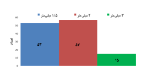 شکل ۸: تعداد و ابعاد ذرات ریز به دام افتاده در دوش