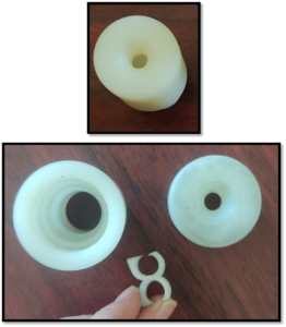 افشانه مخروط کامل مورد استفاده از شرکت BETE و مدل MP375 با جنس پلیپروپیلن و با زاویه پاشش ۹۰ درجه است. حداکثر روزنه عبوری برابر با ۹/۵ میلیمتر است که باعث میشود ذرات ۳ میلیمتری داخل آن گیر نکند. همچنین به دلیل طراحی سه تکه آن رسوب زدایی با سهولت بیشتری انجام میگیرد (شکل ۱۰).