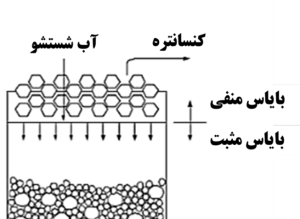 شکل ۴: شماتیکی از بایاس مثبت و منفی داخل سلول فلوتاسیون