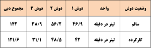 جدول ۱: دبی اندازهگیری شده در دوشهای سالم و کارکرده