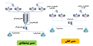 شکل ۳: نحوه توزیع خوراک کارخانه به تانک های حالت دهنده