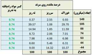 درنهایت دادههای استخراج شده از نرم افزار موازن، دادههای تعدیل شده هستند. همانطور که مشخص است، کسر مواد راهیافته برای دادههای تعدیل شده هر سرند، همگی یکسان و ثابت هستند که نشاندهنده تعدیل خطاهای موجود در دادههای خام است.