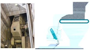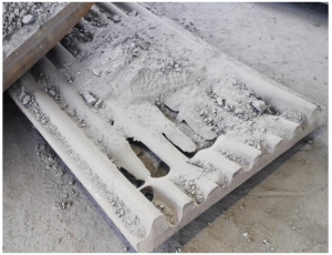 شاید مهمترین چالش بخش سنگشکن کارخانه سرباره ورود قطعات کتابی به داخل سنگشکن باتوجه به ماهیت نوع بار باشد. قطعات کتابی شکل بسته به نوع هندسهای که دارند، مستعد عبور از دهانه فکهای معمولی سنگشکن فکی میباشند. باتوجه به اینکه قطعات کتابی شکل در یک بعد اندازه زیادی داشته و از بعدهای دیگر ضخامت کمتری دارد، توانایی عبور از دهانه فکهای معمولی را دارد. همچنین این عبور این قطعات باتوجه به وزن بالا و لبههای تیز اغلب موجب پارگی نوار و درنتیجه توقف کارخانه میشود (شکل ۴).