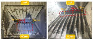 یکی از بزرگترین چالشهای عدم بارکشی از همه دهانههای انبار ذخیره، وجود پله در دهانههای خروجی انبار ذخیره بود که این دهانهها با نصب صفحات شیبدار فلزی اصلاح شدند (شکل ۱۱). پس از نصب صفحات فلزی و حذف پلی داخلی دهانههای خروجی انبار ذخیره، گرفتگی در این بخش به صفر رسید.