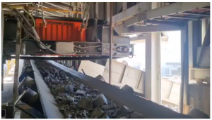 یکی دیگر از چالشهای بخش سنگشکنی کارخانه سرباره، ورود قطعات فلزی به مدار آسیاکنی بود که موجب آسیب دیدگی تجهیزاتی مثل نوارنقالهها، پمپها، سیکلونهای کارخانه و همچنین گرفتگی دهانههای خروجی انبار ذخیره میشد. باتوجه به این موضوع، جداکننده مغناطیسی روی نوار محصول سنگشکن فکی نصب شد (شکل ۹).